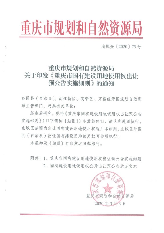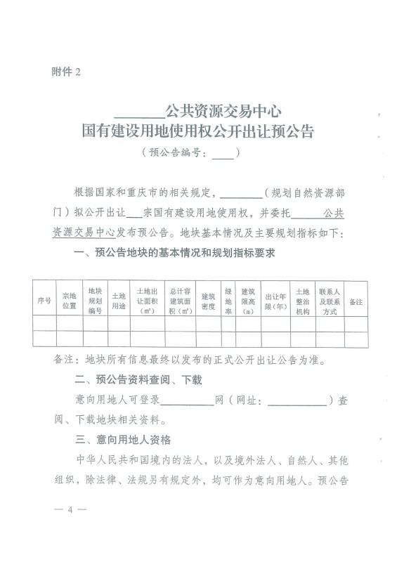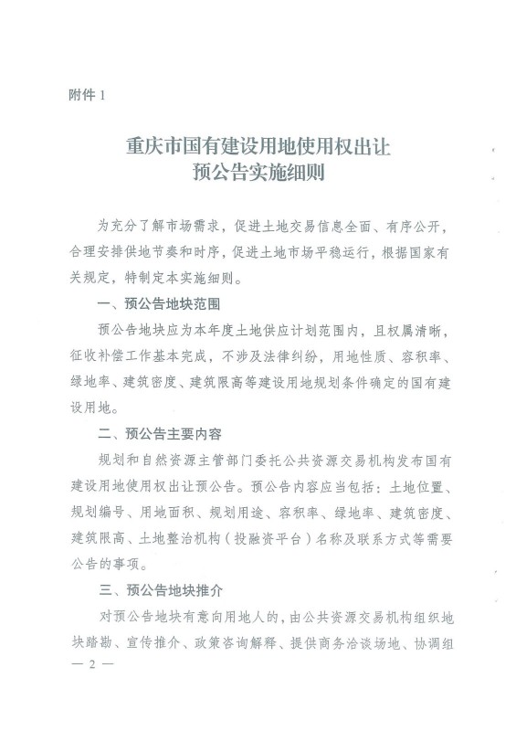《重慶市國有建設用地使用權出讓預公告實施細則》